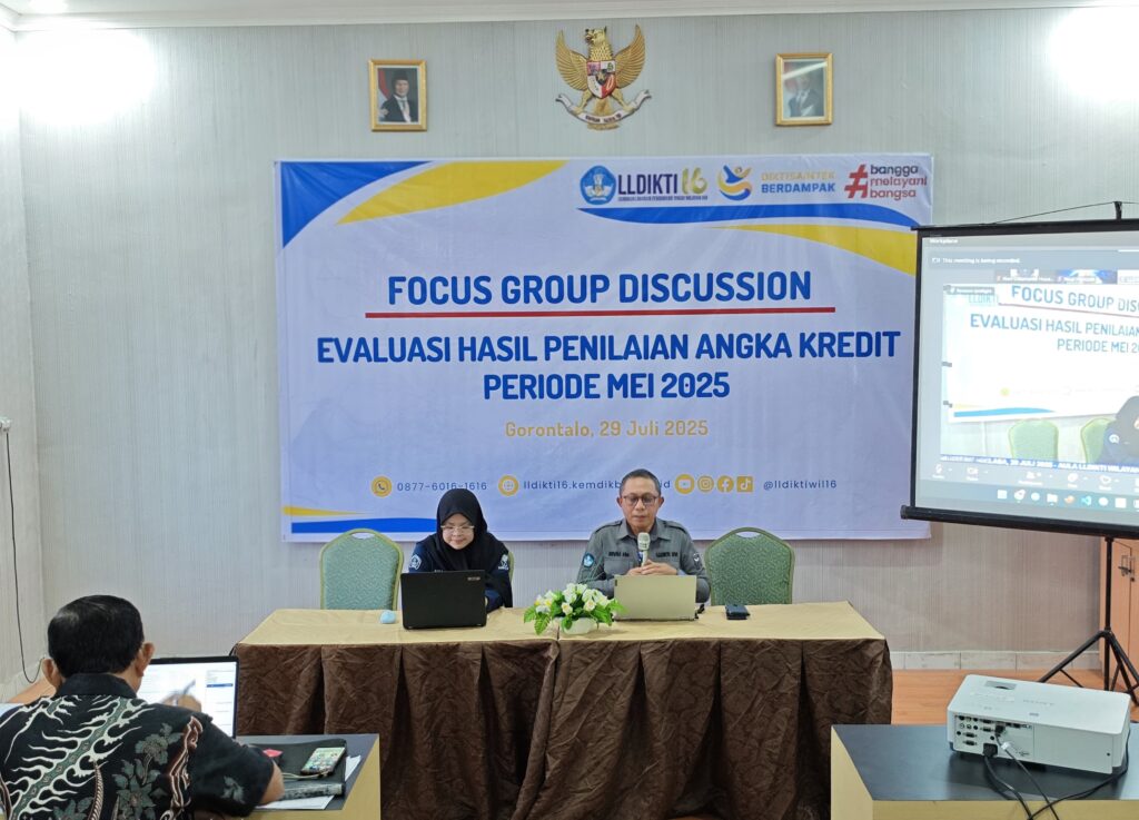 GORONTALO – Lembaga Layanan Pendidikan Tinggi (LLDIKTI) Wilayah XVI menggelar Focus Group Discussion (FGD) mengenai Penilaian Angka Kredit periode Mei 2025. Pertemuan yang berlangsung pada Selasa, 29 Juli 2025 , ini menyoroti sejumlah tantangan signifikan dalam proses pengajuan usulan jabatan fungsional dosen, terutama terkait kelengkapan administrasi yang menyebabkan banyak usulan tidak dapat diproses lebih lanjut sebelum memasuki tahap evaluasi substantif.